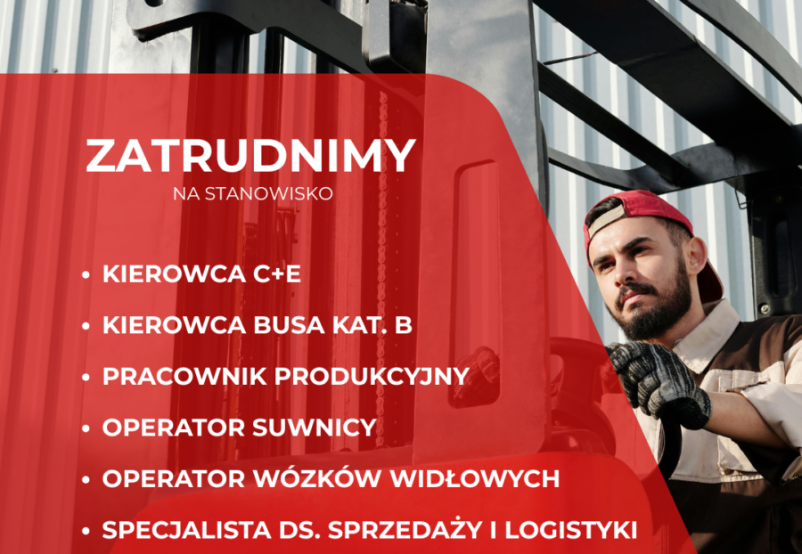 🔹 Dołącz do naszego zespołu!Szukasz stabilnego zatrudnienia w branży budowlanej? Poszukujemy pracowników na stanowiska:🚛 Kierowca C+E🚐 Kierowca busa kat. B🏭 Pracownik produkcyjny🏗️ Operator suwnicy🚜 Operator wózka widłowego📊 Specjalista ds. sprzedaży i logistyki Oferujemy:✅ Stabilne zatrudnienie✅ Atrakcyjne warunki pracy 📍 Czytaj dalej